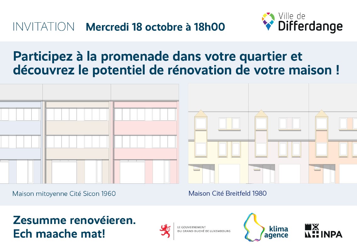 Als Klima-Agence 2022 auf der Suche nach einer Partnergemeinde für ihr Pilotprojekt „Zesumme renovéieren“ war, fiel die Wahl aufgrund der hohen Anzahl an renovierungsgeeigneten Gebäuden auf Differdingen.