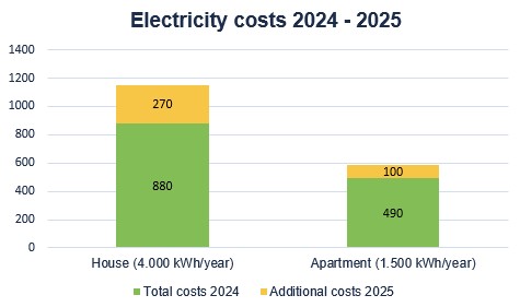 For a standard single-family house or appartment, the changes in electricity costs are as follows: