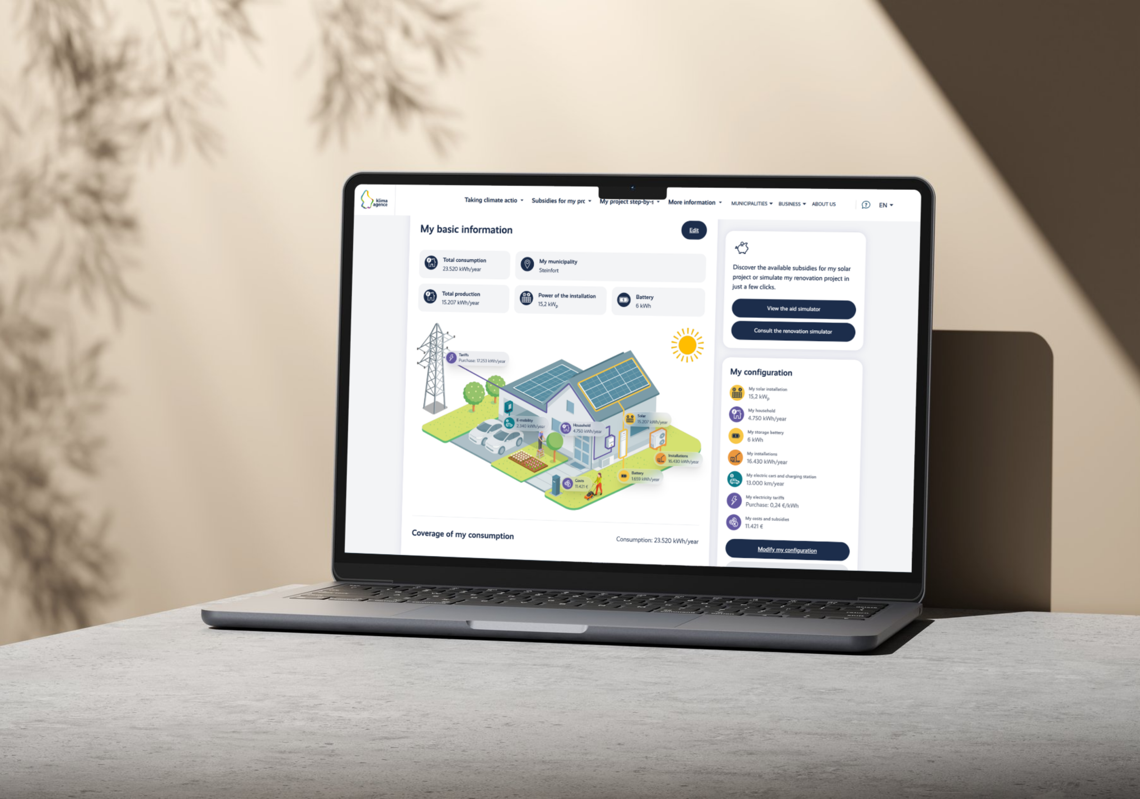 Given the current energy policy context, generating your own electricity is a practical way to achieve greater energy independence. The Klima-Agence solar simulator aims to support this approach by making energy transition solutions more accessible, understandable, and tangible for private households.
